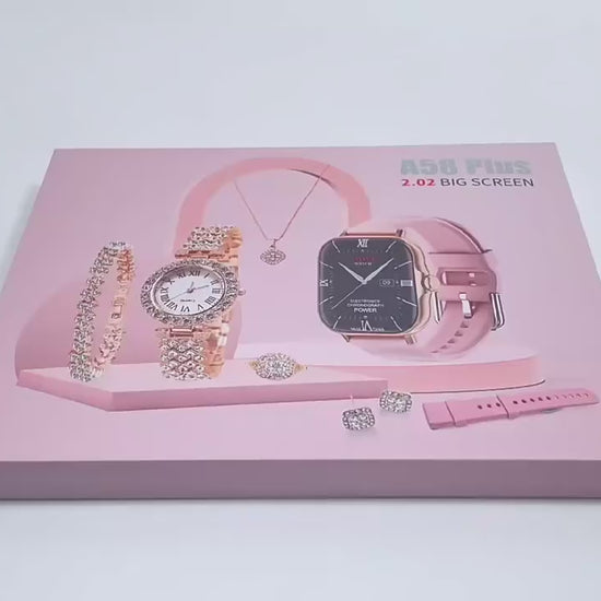 Introducing the 6 in 1 A58 Plus Smartwatch – the ultimate Christmas gift set for the modern woman. Designed to keep you stylish, connected, and on track with your health and fitness goals, this smartwatch is more than just a timepiece – it’s a lifestyle upgrade.